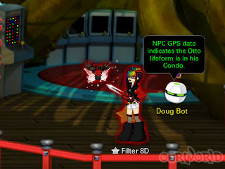 Throw a water balloon or shoot him with a water gun. Doug Bot will now send you to find Otto.
